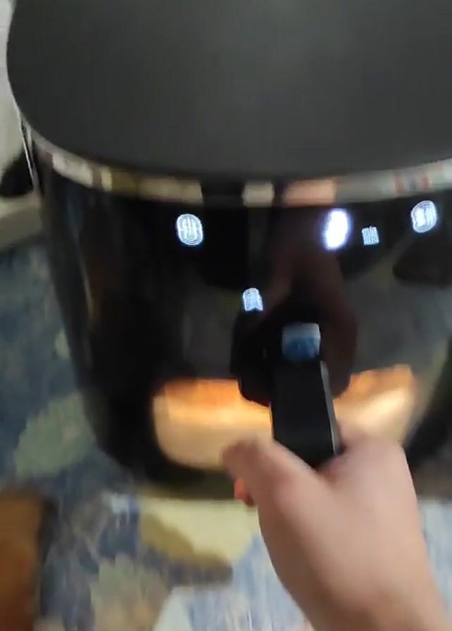 - "A person pulls the drawer of a black air fryer open to reveal two cooked patties sitting on parchment paper" by FM-7CnuG3, licensed under CC BY 4.0