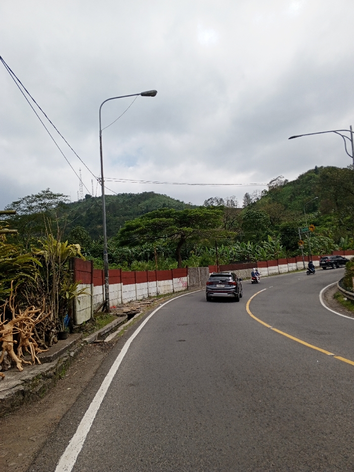 - "The image displays a curved asphalt road cutting through a mountainous, heavily vegetated region in Cisarua, Indonesia, under a uniformly overcast sky" by FM-0due12, licensed under CC BY 4.0
