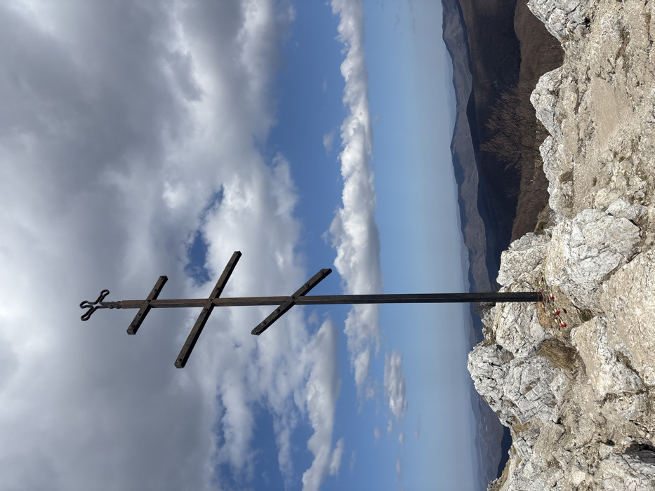 - "A weathered, dark metal Orthodox cross stands prominently on a rocky mountain peak near the city of Shipka, Bulgaria" by FM-BUO503, licensed under CC BY 4.0