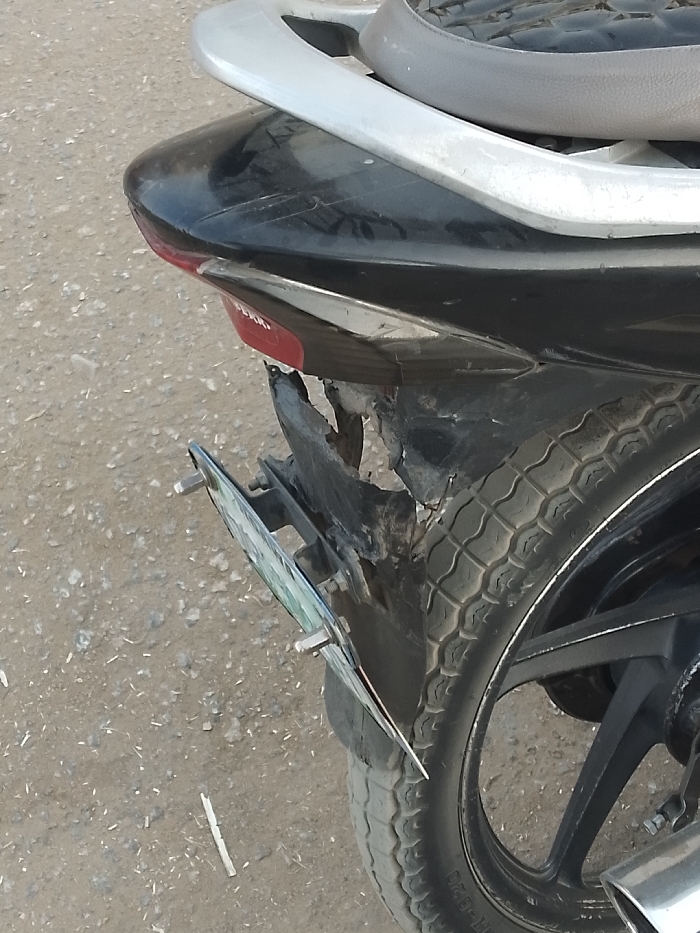 - "A close-up shows the damaged rear of a black motorcycle" by FM-8iMFj1, licensed under CC BY 4.0