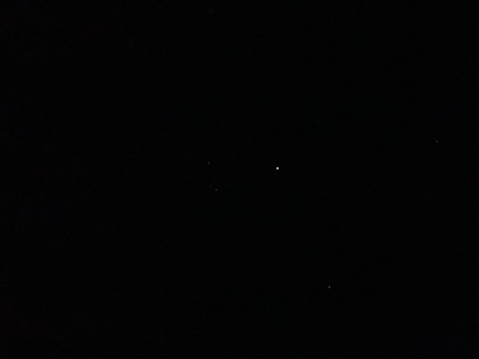 The image displays a dark, expansive night sky from Byal Izvor, Bulgaria. Scattered across the black background are approximately five to six minute, indistinct white points of light, consistent with distant stars. The scene is devoid of any discernible foreground elements, terrestrial objects, people, actions, or other environmental features.