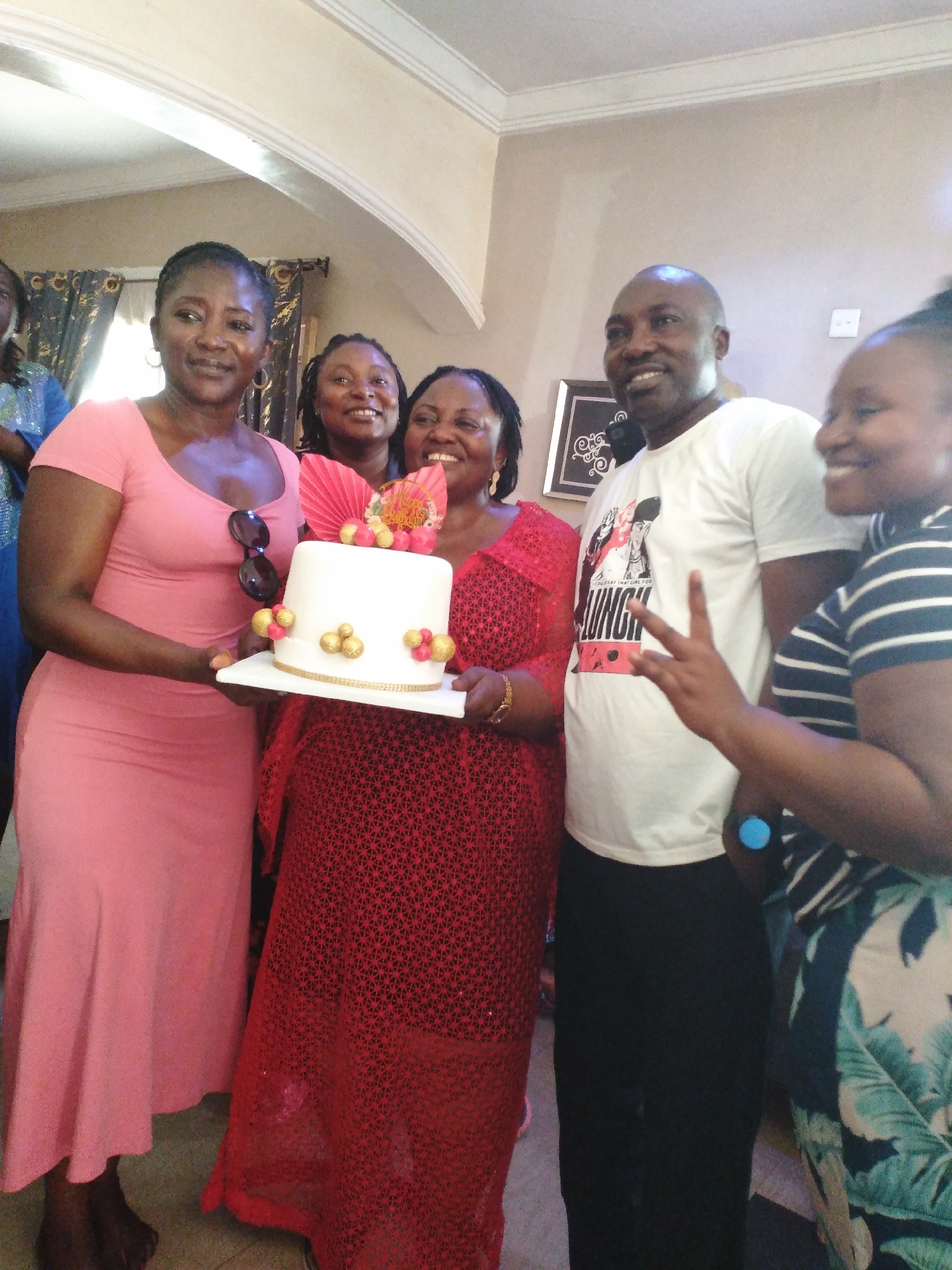 - "A group of five people stand together indoors, smiling and holding a decorated cake" by FM-MFWzc2, licensed under CC BY 4.0