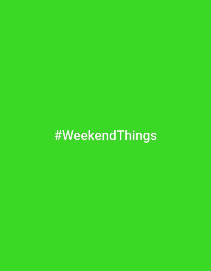 The image displays a solid, bright green background. Centered on this background, the white text "#WeekendThings" is present. No individuals, objects, or actions are depicted. The location is an undifferentiated digital space, not a physical scene within the city of Unknown, Unknown.