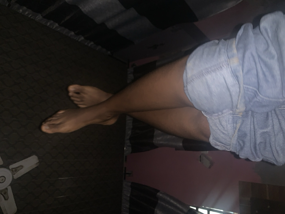 The image displays the lower body of an individual, consisting of dark-skinned legs and bare feet, positioned upwards and crossed at the ankles