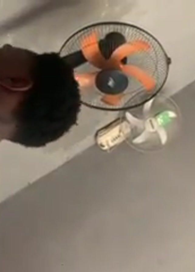 - "Here is a detailed description of the video: The video shows a person from the shoulders up looking up at two fans mounted on a gray ceiling" by FM-FjXUk1, licensed under CC BY 4.0