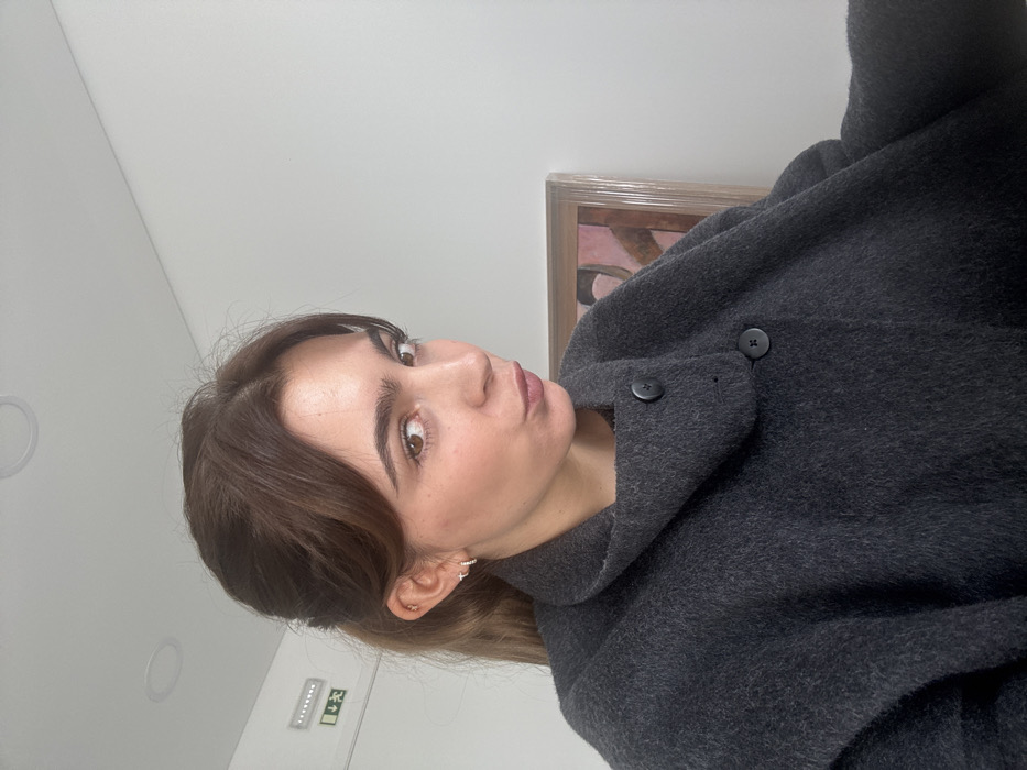 An image depicts a female individual, observed from the chest up, located indoors in Torres Vedras, Portugal