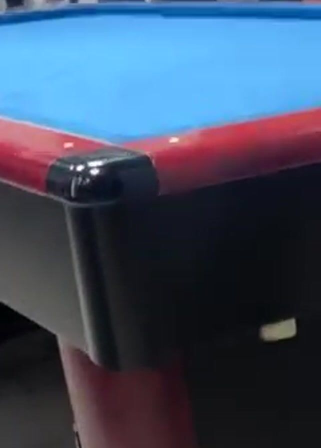 - "The scene shows a group of men inside what appears to be a billiards room or cafe, centered around a billiards table with a light blue felt surface, surrounded by a burgundy and black trim, marked with the word "Platin"" by FM-osv9b2, licensed under CC BY 4.0