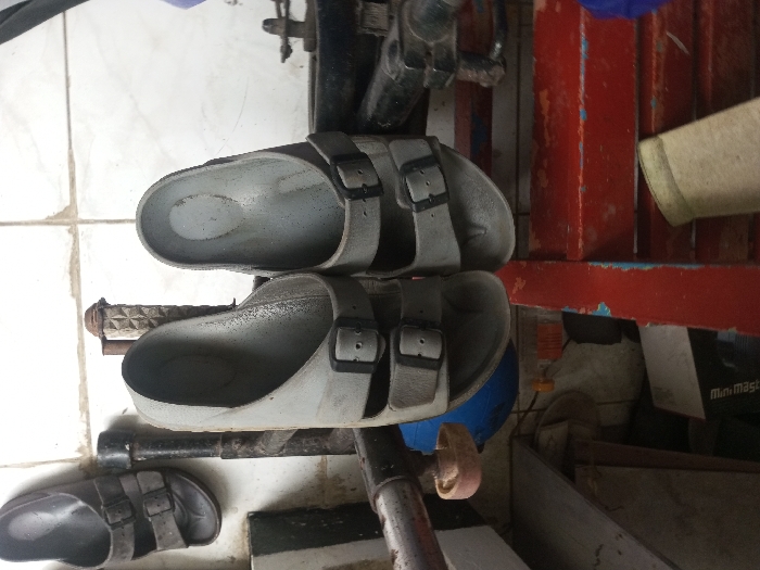 - "The scene, located in Ciherang, Indonesia, depicts an area featuring three pairs of sandals" by FM-Qj39A2, licensed under CC BY 4.0