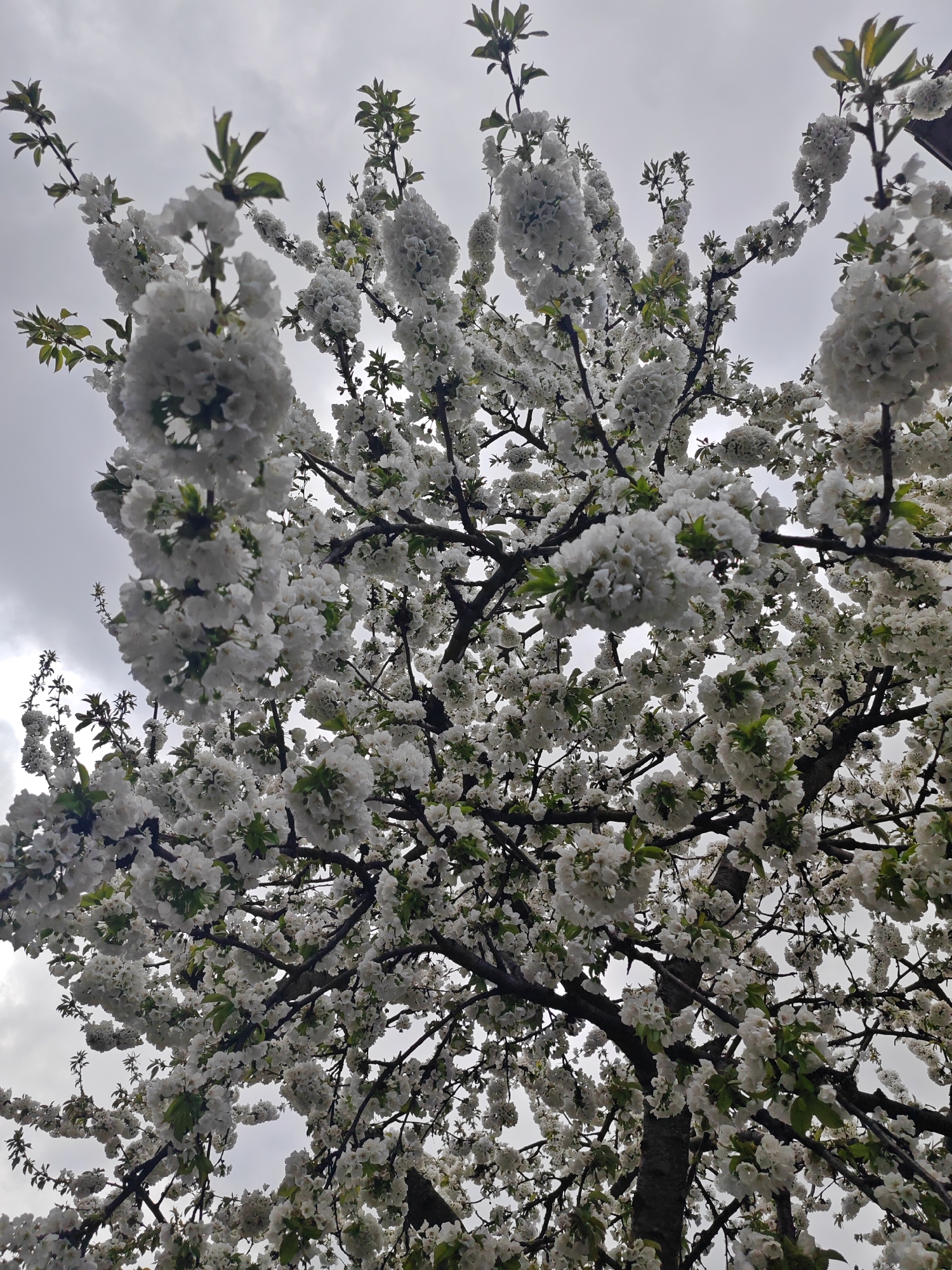 - "A low-angle shot depicts a tree densely covered in white blossoms against a cloudy sky" by FM-VuZTE3, licensed under CC BY 4.0