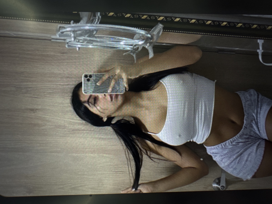 A female subject is depicted indoors in Oltiariq, Uzbekistan, taking a mirror selfie