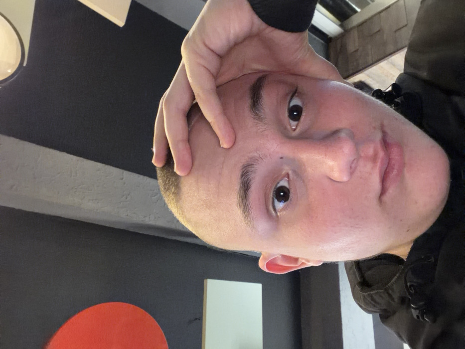 - "An individual with a closely shaved head, fair skin, and dark eyes is depicted in a close-up, indoor portrait" by FM-beWM13, licensed under CC BY 4.0