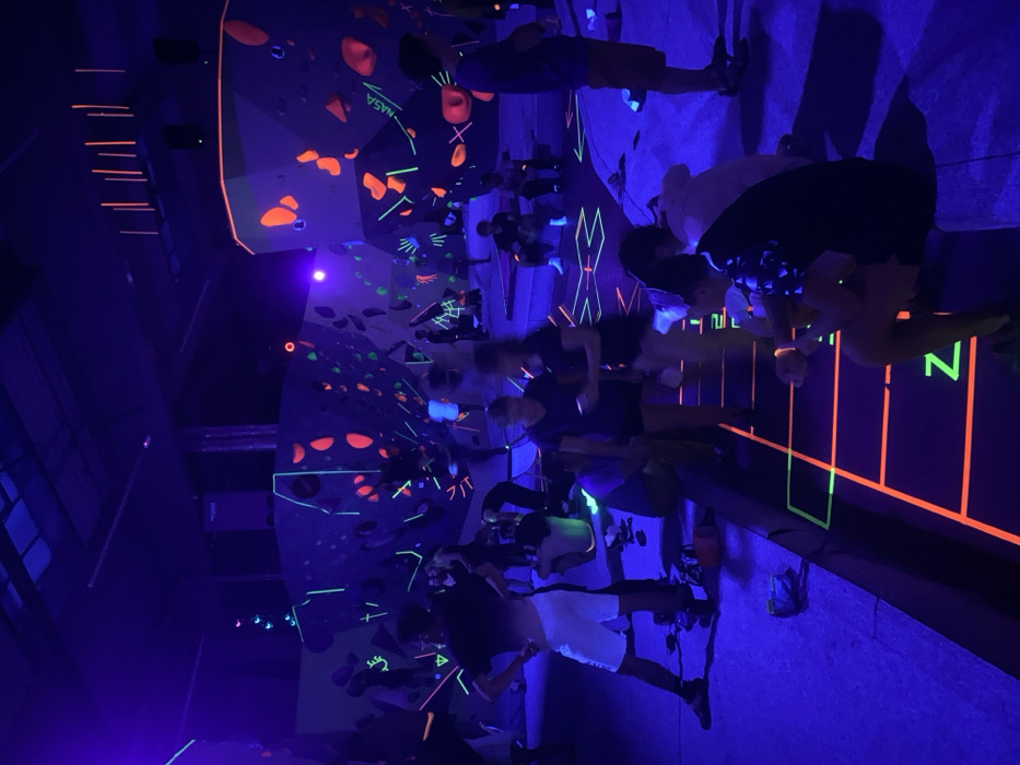 - "This image depicts an indoor blacklight bouldering gym, identified as Boulder Bar NASA, located at Nádražní 32, 702 00 Ostrava, Czechia" by FM-GMXqP2, licensed under CC BY 4.0
