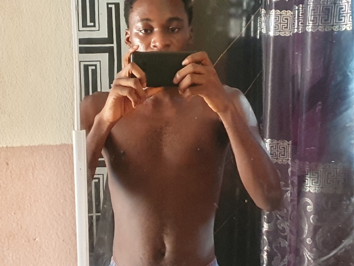 The image depicts an indoor mirror selfie taken in Lokoja, Nigeria