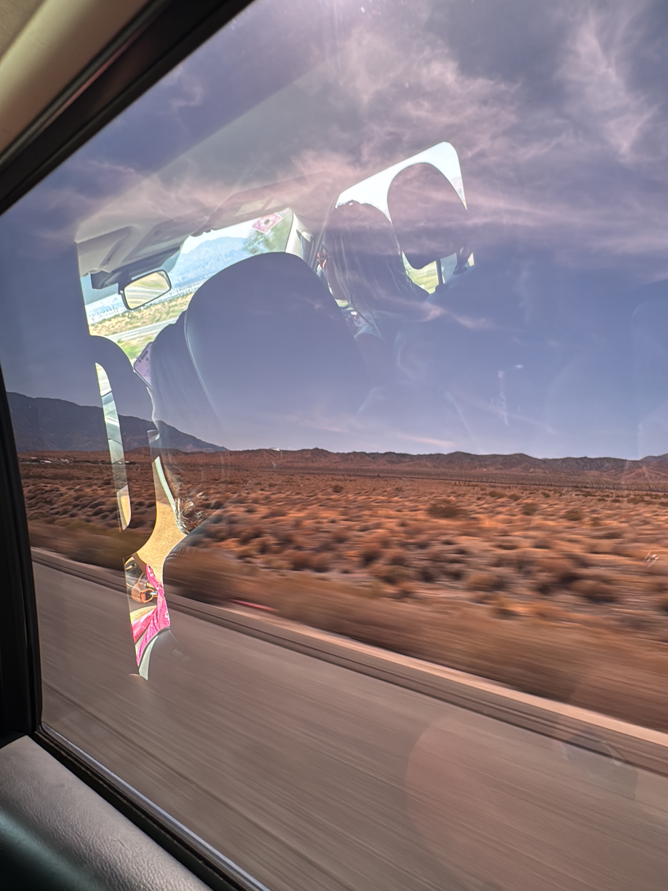 - "view from inside a moving car, looking out the window at a desert landscape" by FM-G9oSF3, licensed under CC BY 4.0