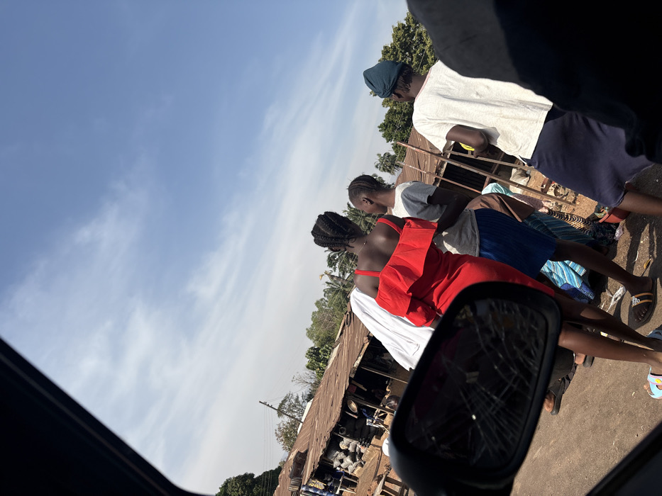 The image captures a daytime street scene in Karshi, Nigeria, viewed from within a vehicle