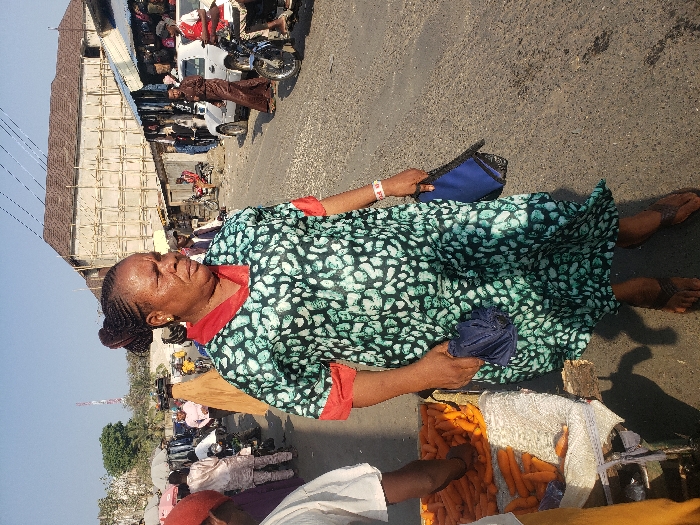 The image depicts a busy outdoor market scene in Suleja, Nigeria