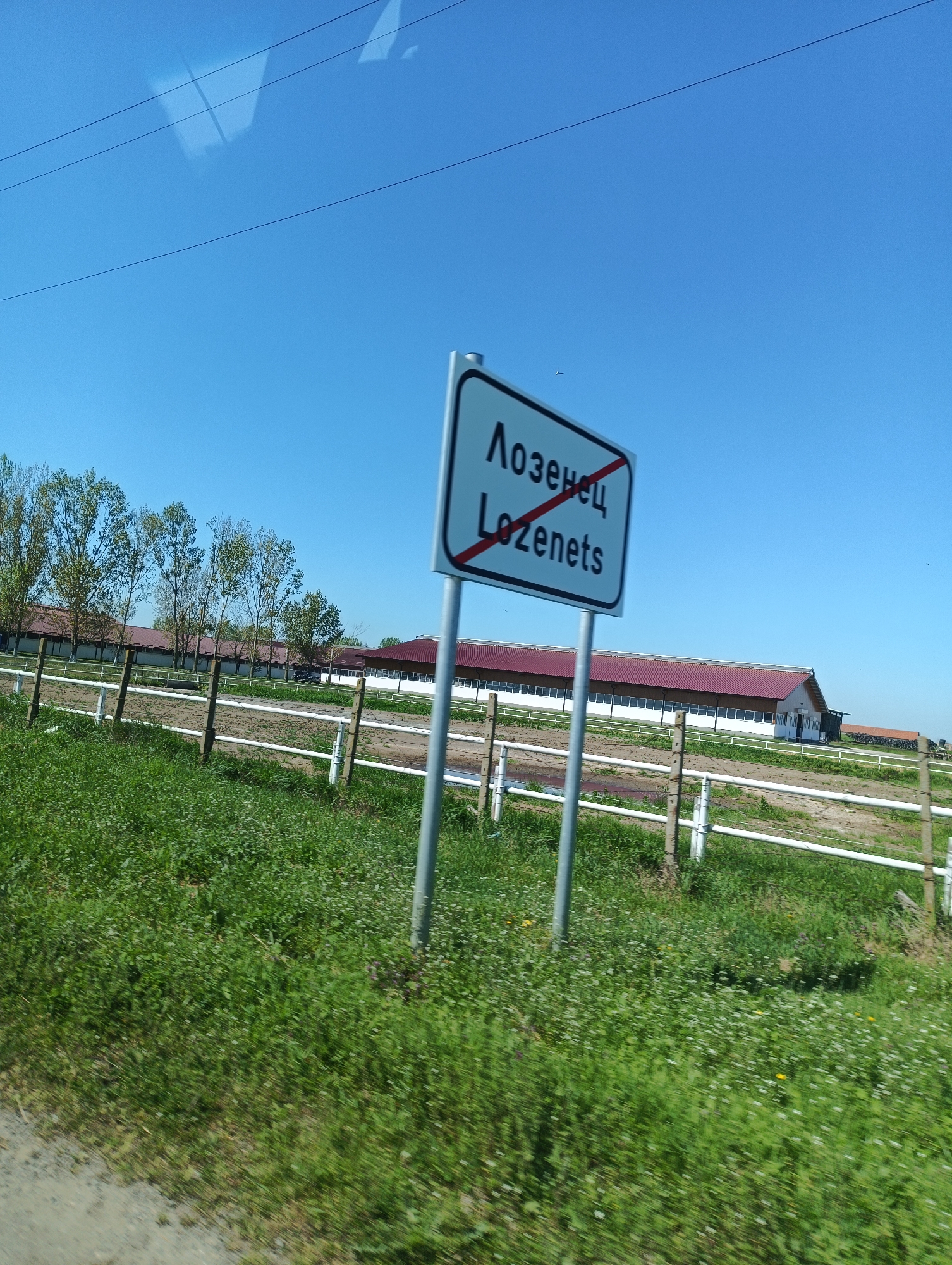 The image depicts a sign indicating the end of the settlement of Lozenets, Bulgaria