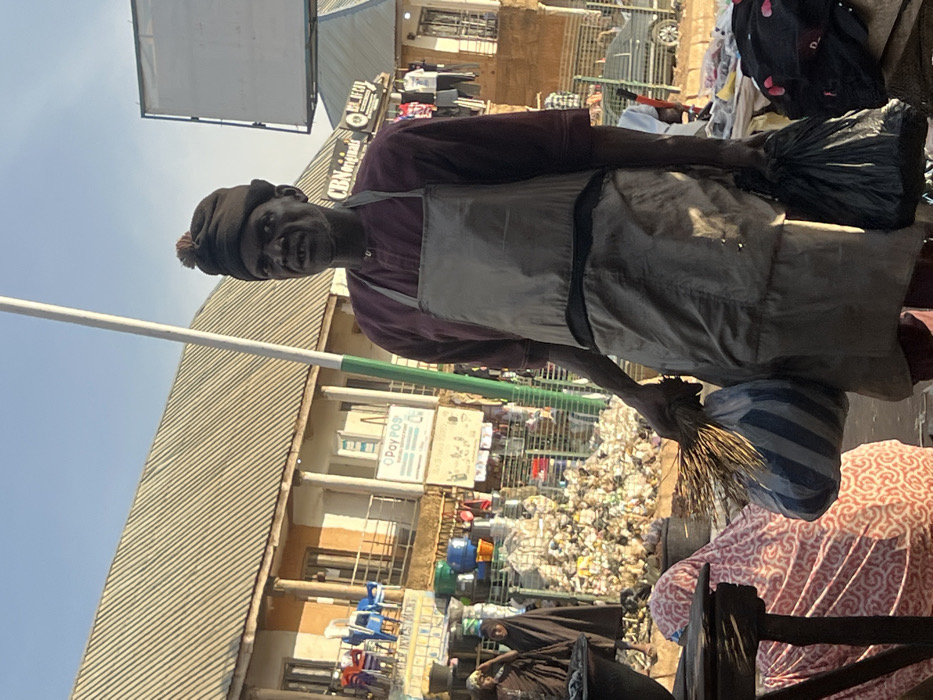 A dark-skinned man stands facing forward in an outdoor market environment in Bukuru, Nigeria