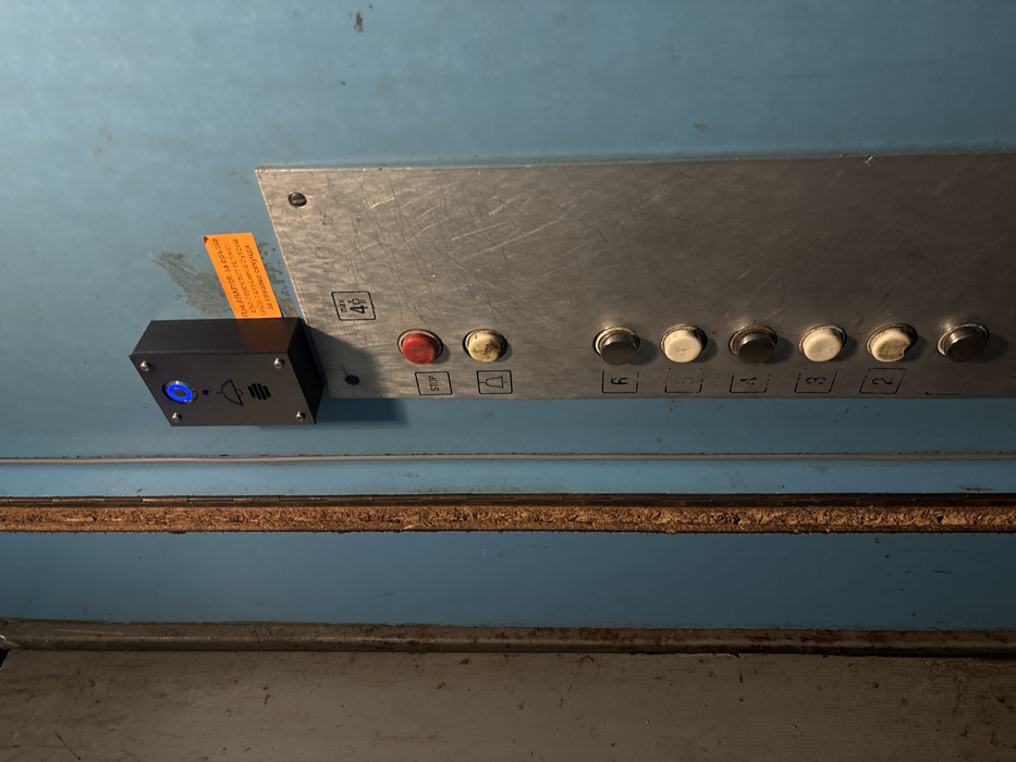 The image displays a section of an elevator interior in Unknown, Unknown