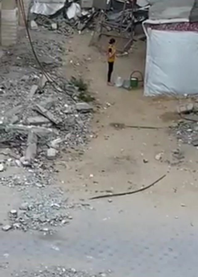 - "child standing in a debris-filled area with several tents in the background" by FM-U9GOy1, licensed under CC BY 4.0