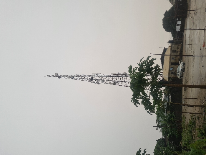 - "An overcast day in Igando Oloja, Nigeria, depicts a tall, metal lattice cellular communication tower dominating the center-right of the frame, equipped with multiple dish and panel antennas" by FM-pSG9r2, licensed under CC BY 4.0