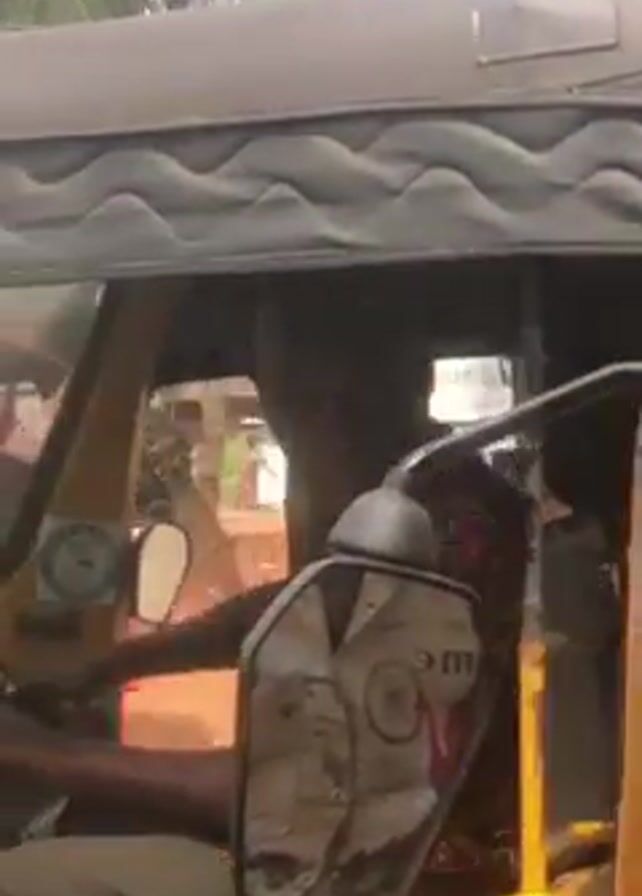 The video is shot from inside a yellow auto rickshaw, commonly known as a "Keke" or "Tuk-Tuk," moving along a street
