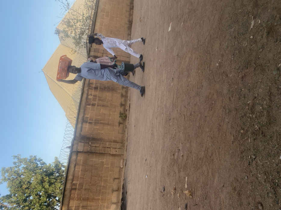 The image captures an outdoor scene in the city of Barakin Akawo, Nigeria, under a clear blue sky