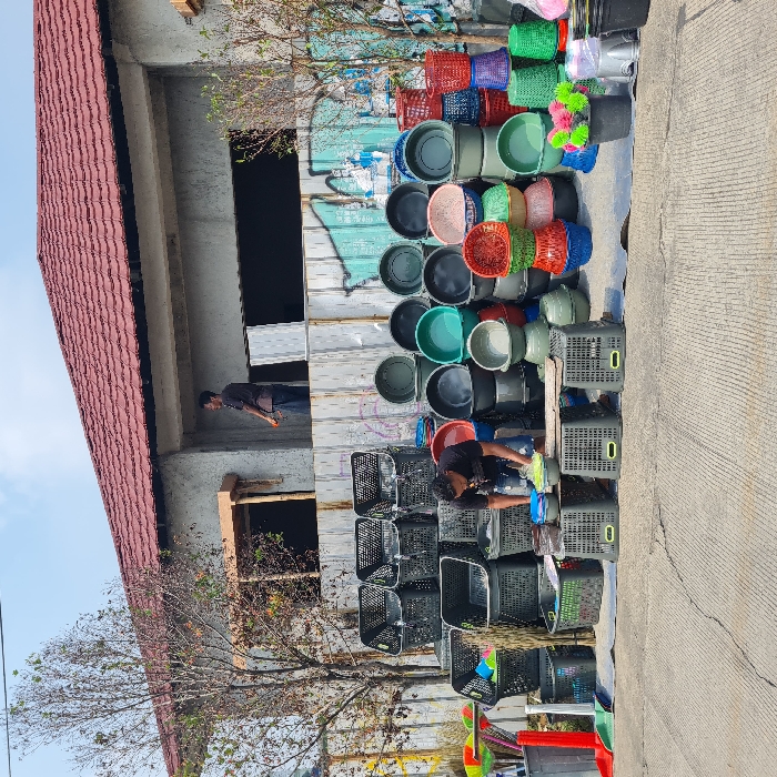 - "A man is standing near a pile of plastic basins and containers" by FM-SIX1C2, licensed under CC BY 4.0