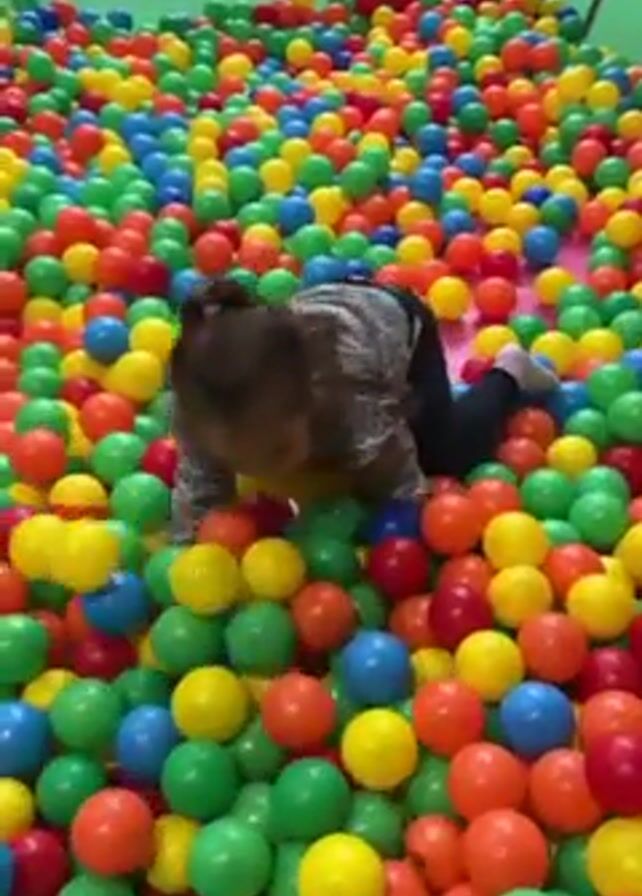 young child in a brightly colored ball pit