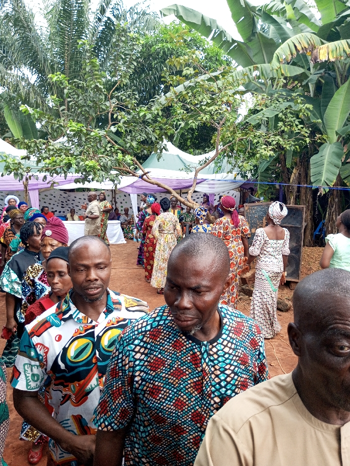 This image captures an outdoor social gathering in Oko Town, Nigeria