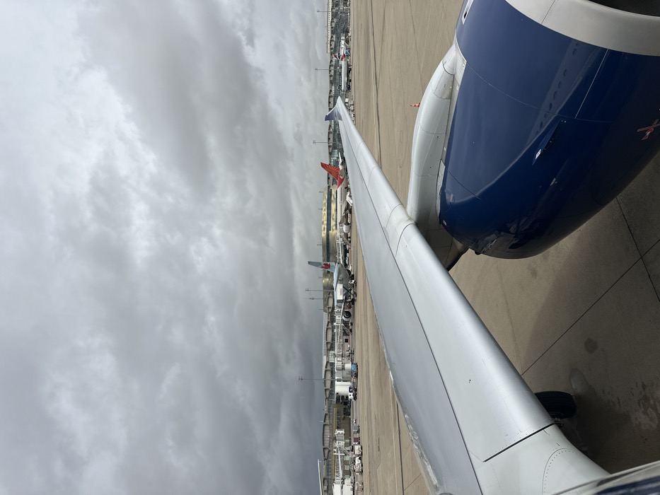 - "An external view from an aircraft window at Charles de Gaulle Airport in Tremblay-en-France, France, depicts an active airport apron under an overcast sky" by FM-8c0As1, licensed under CC BY 4.0