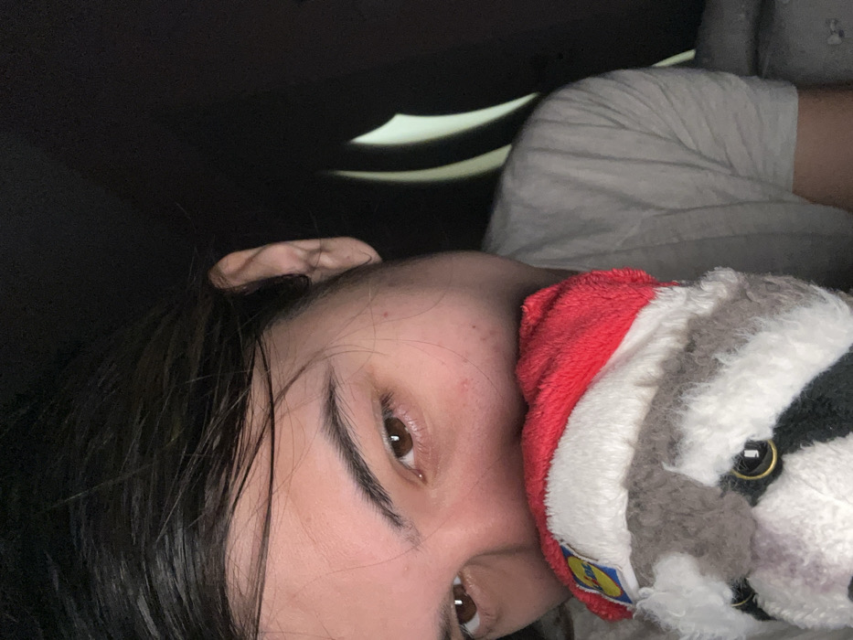 - "A close-up image depicts an individual, likely an adult or young adult, partially obscuring their lower face with a plush toy" by FM-R39aY2, licensed under CC BY 4.0