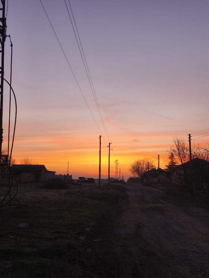 - "The image depicts a static, panoramic view of a semi-rural street scene in Slavyanovo, Bulgaria, at either sunrise or sunset" by FM-r4Hhz2, licensed under CC BY 4.0