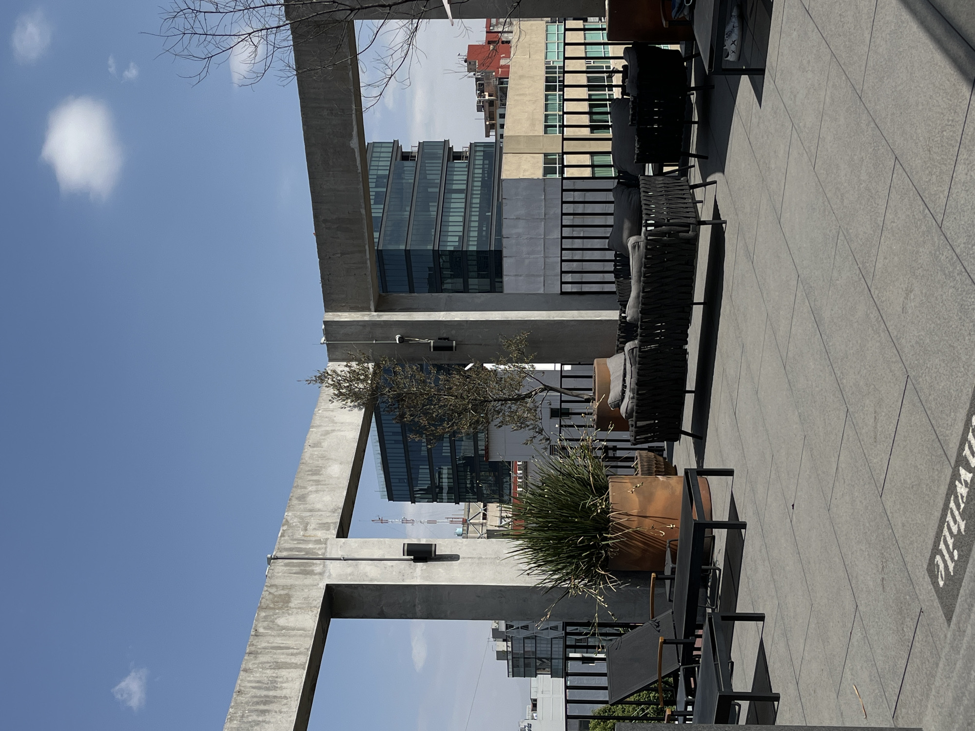 The image depicts an outdoor rooftop patio in Mexico City, Mexico