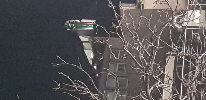 - "The image displays a nighttime view in Shumen, Bulgaria, focusing on a multi-story building partially obscured by a dense foreground of bare, leafless tree branches" by FM-acgRD3, licensed under CC BY 4.0