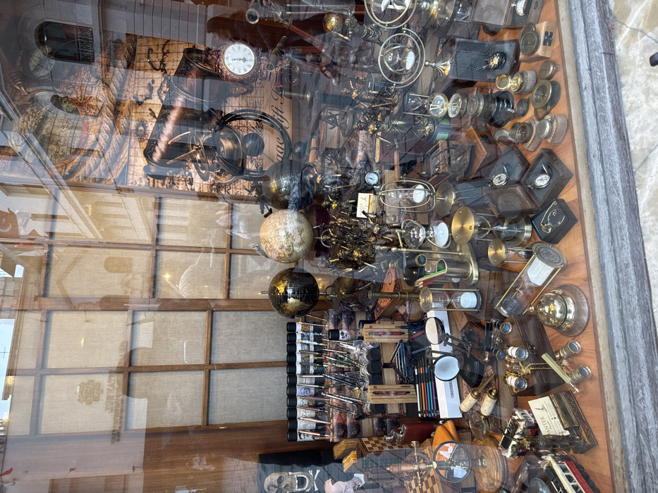 - "The image displays a detailed shop window in Beyoğlu, Turkey, filled with numerous vintage-style and antique replica items" by FM-E68DV2, licensed under CC BY 4.0