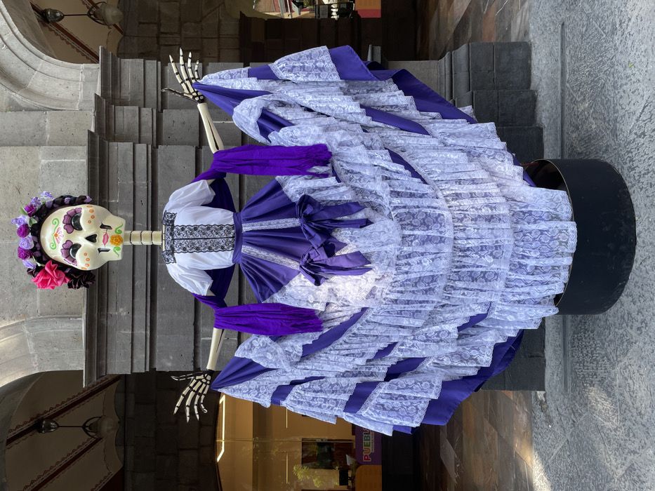 - "A large, highly detailed Catrina skeleton figure is positioned centrally, facing forward, within an outdoor stone arcade in Puebla City, Mexico" by FM-Ik6eJ3, licensed under CC BY 4.0