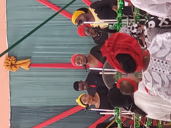 The scene depicts an indoor gathering in Lokoja, Nigeria