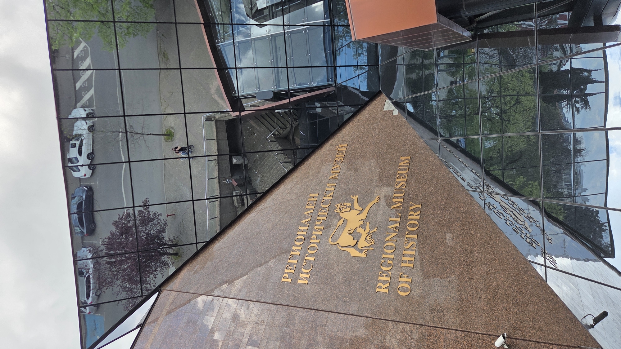 The image depicts the Regional Museum of History in Stara Zagora, Bulgaria