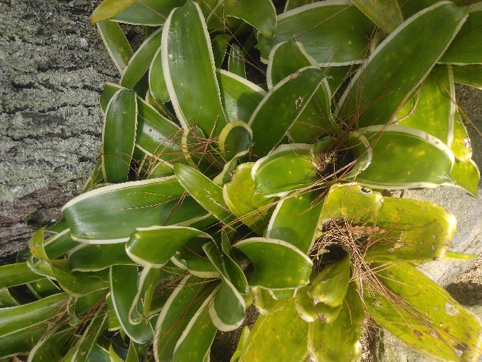- "The image displays a close-up, high-angle view of multiple variegated plants, likely a species of Bromeliad, situated outdoors in Cipanas, Indonesia" by FM-cexUw2, licensed under CC BY 4.0