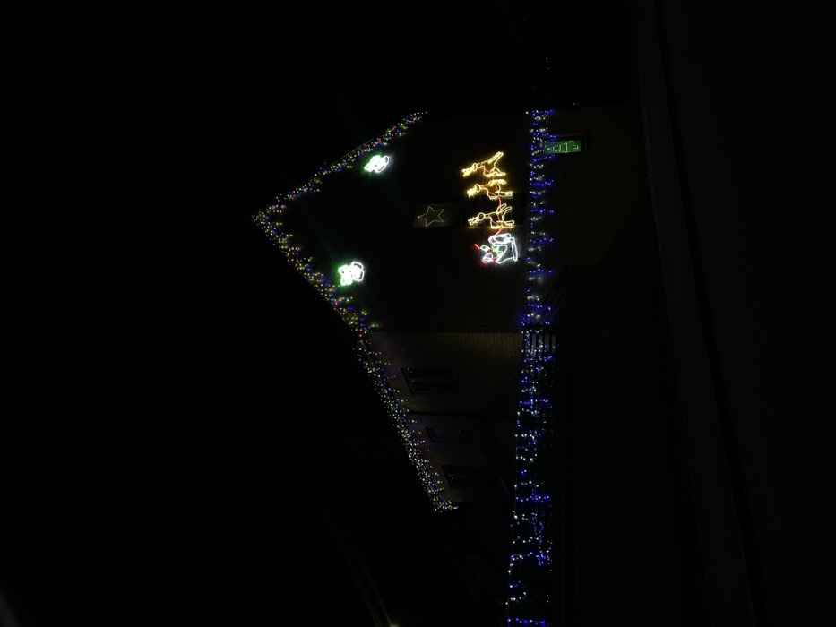 - "A building is adorned with Christmas lights against a dark night sky" by FM-HGSMX2, licensed under CC BY 4.0