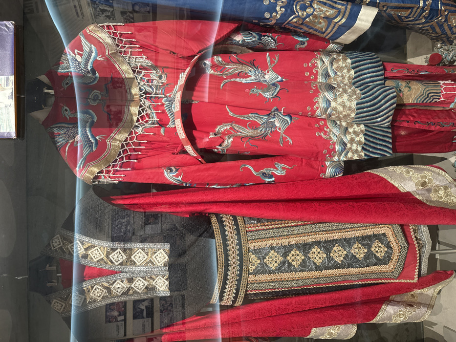 - "This image captures a display of two ornate traditional Chinese garments, likely opera costumes, exhibited behind a reflective glass barrier in an indoor setting located in Chaoyang District, China" by FM-Mlchq1, licensed under CC BY 4.0