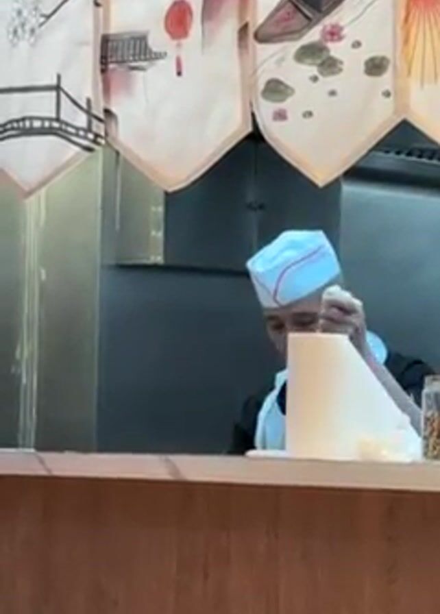 - "A man in a white chef's hat stands behind a light brown counter, under hanging Asian-themed decorative cloths" by FM-FyafH2, licensed under CC BY 4.0