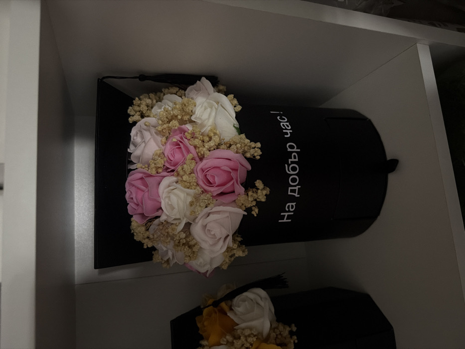 - "An indoor scene displays two floral gift boxes arranged on a white shelf" by FM-4jEj83, licensed under CC BY 4.0