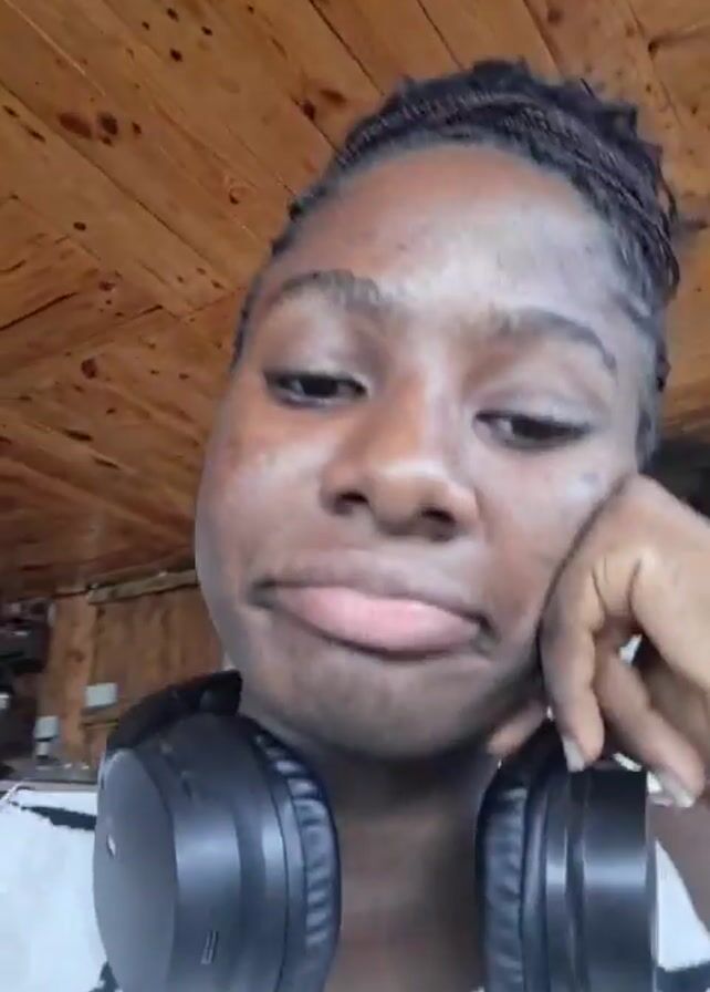 person sitting under a wooden veranda, enjoying a drink. The drink is in a tall glass with a pink straw and appears to be a light-colored milkshake with a swirl of darker syrup or sauce. There is another glass next to it, partly empty. The table is glass with a woven frame. Outside, a group of people are seated at a table next to a pool. Palm trees and other vegetation are visible in the background. A fan is whirring nearby. The video starts with a close-up of a woman's face, then pans to the drink and the surrounding area.