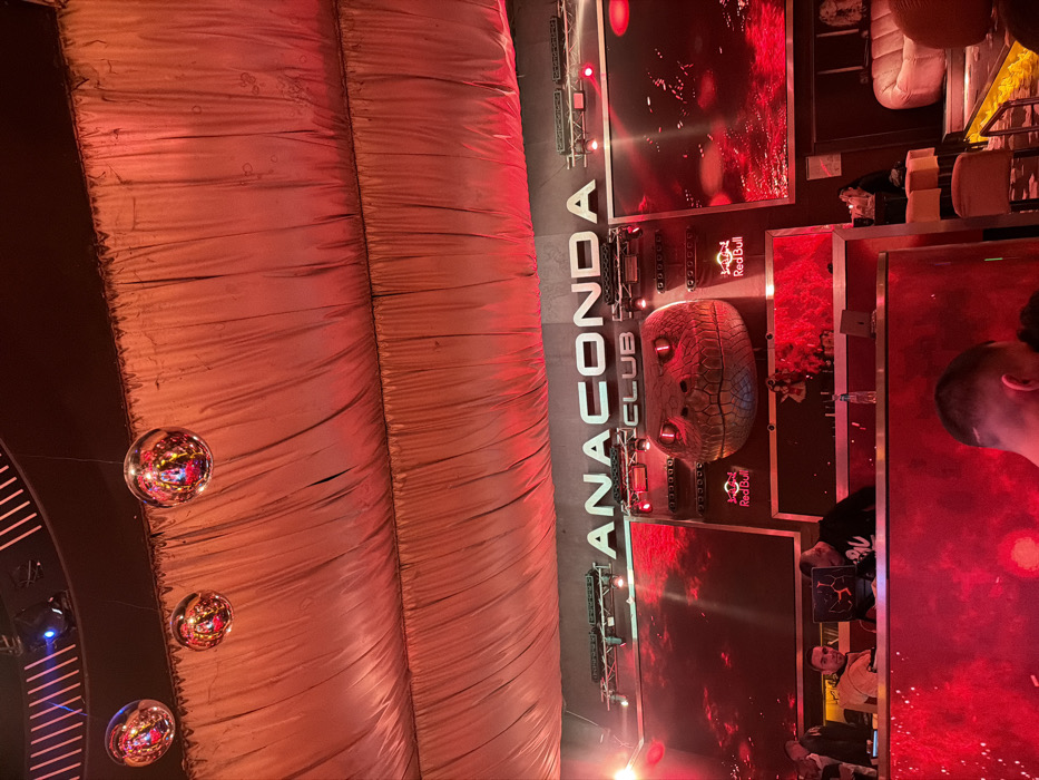 - "The image depicts the interior of a nightclub identified as "Anaconda Club" in Pleven, Bulgaria, characterized by pervasive red illumination" by FM-7eYfh2, licensed under CC BY 4.0