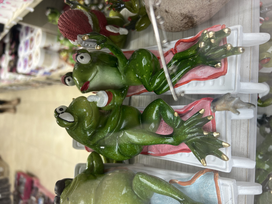 - "This image depicts a section of a retail store interior in Bansko, Bulgaria, focusing on a display of decorative frog figurines" by FM-eNEgL2, licensed under CC BY 4.0