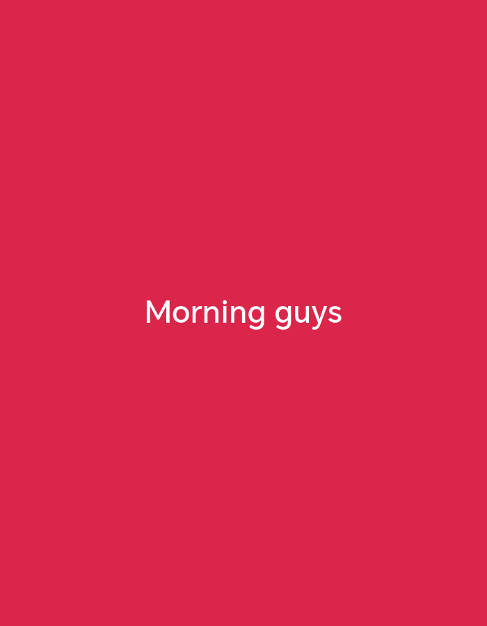 The image displays the text "Morning guys" in white lettering, centered against a solid red background