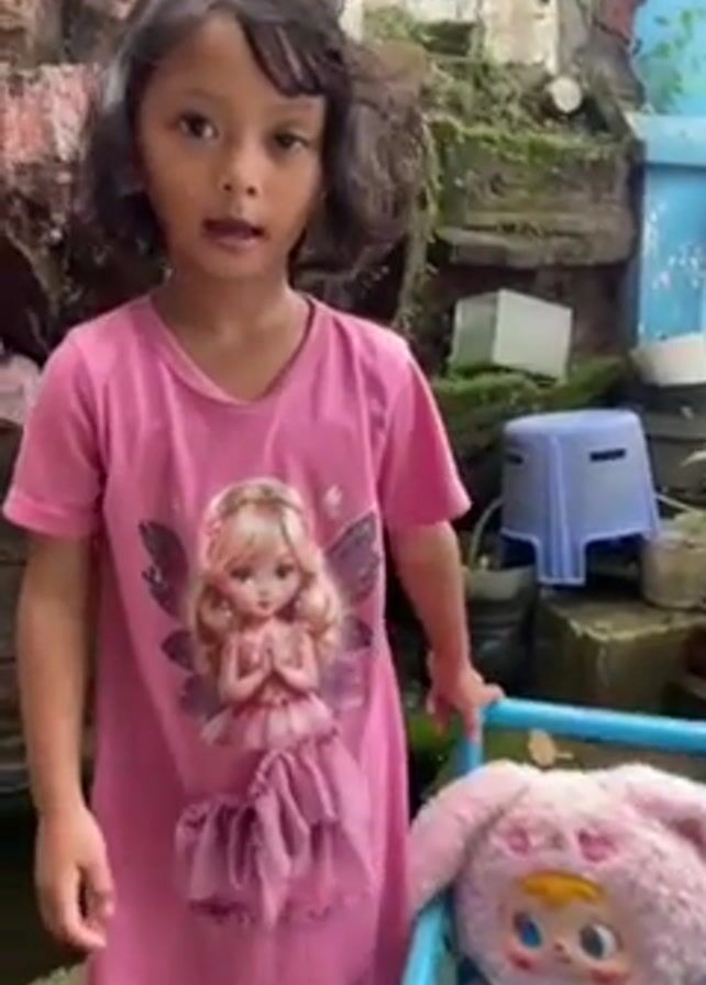 - "A young girl with short dark hair stands in a backyard next to a toy shopping cart with a stuffed bunny inside" by FM-htxI33, licensed under CC BY 4.0