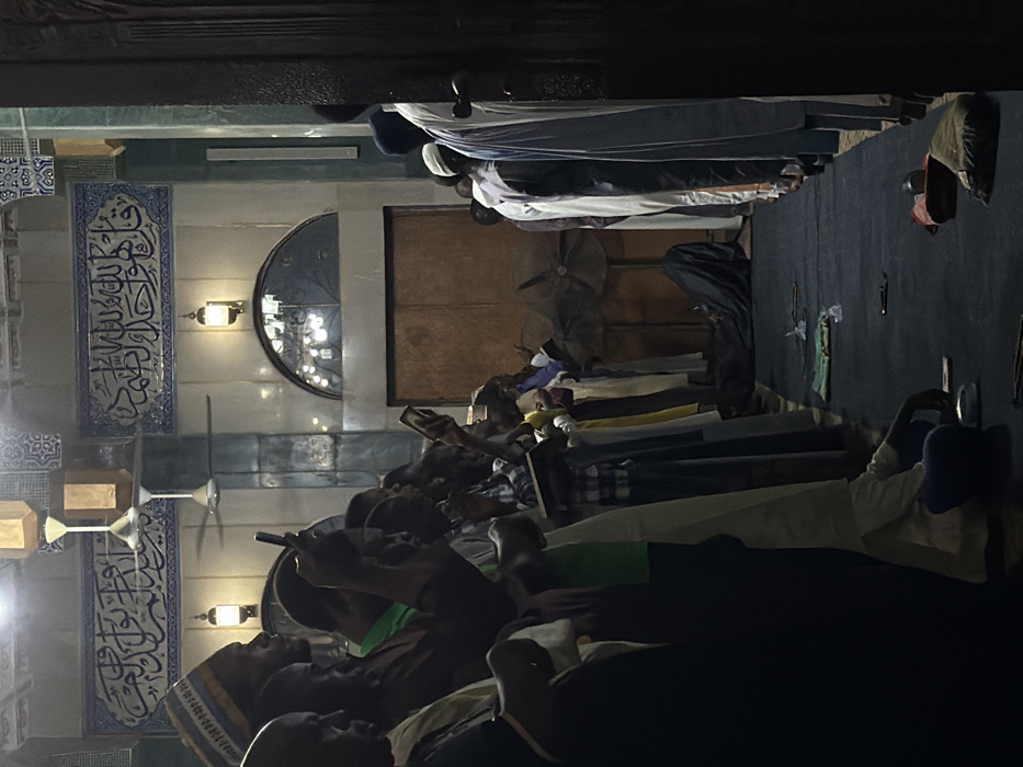- "Inside a dimly lit prayer hall in Gandu Albasa, Nigeria, numerous adult males, predominantly dark-skinned, stand in rows facing away from the viewer, engaged in what appears to be congregational prayer" by FM-tpZ622, licensed under CC BY 4.0